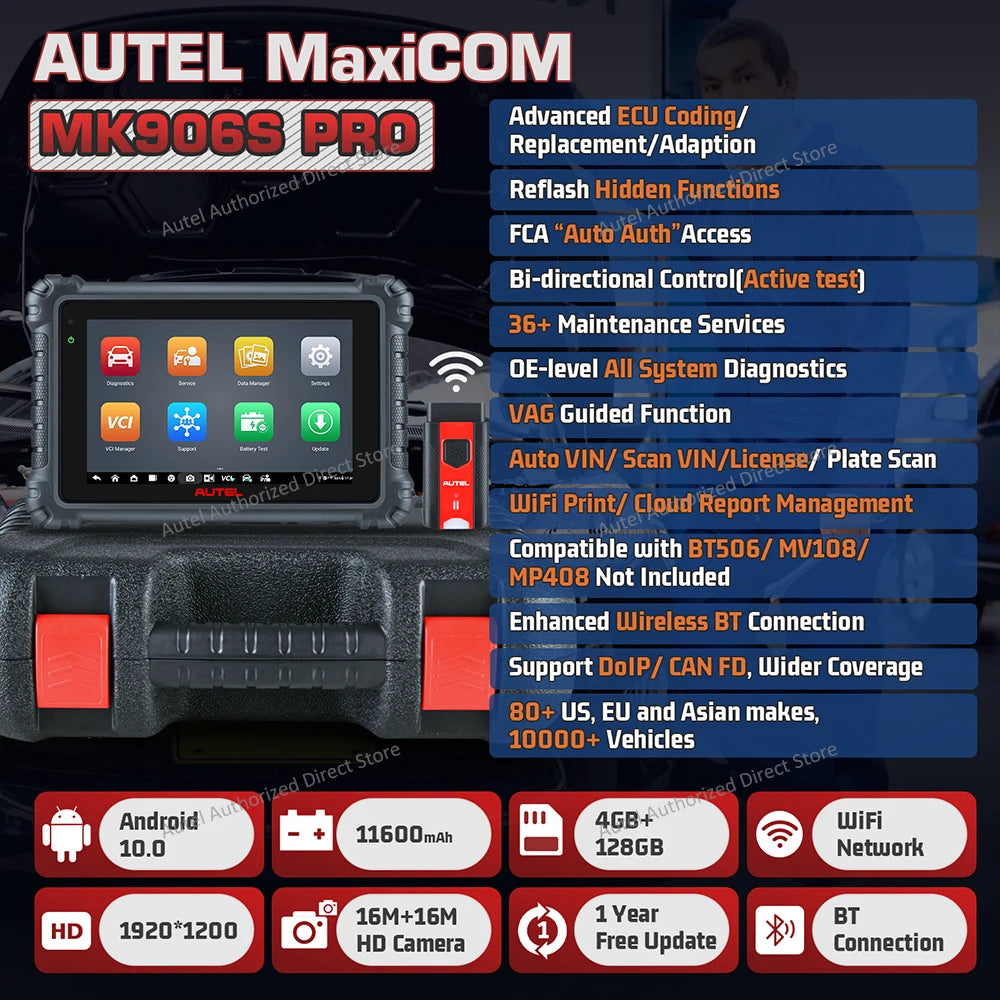 Autel MaxiCOM MK906S PRO OBD2 Diagnostic Scanner Advanced ECU Coding Diagnostic Tool Bi-directional Scanner Support CAN FD/ DoIP