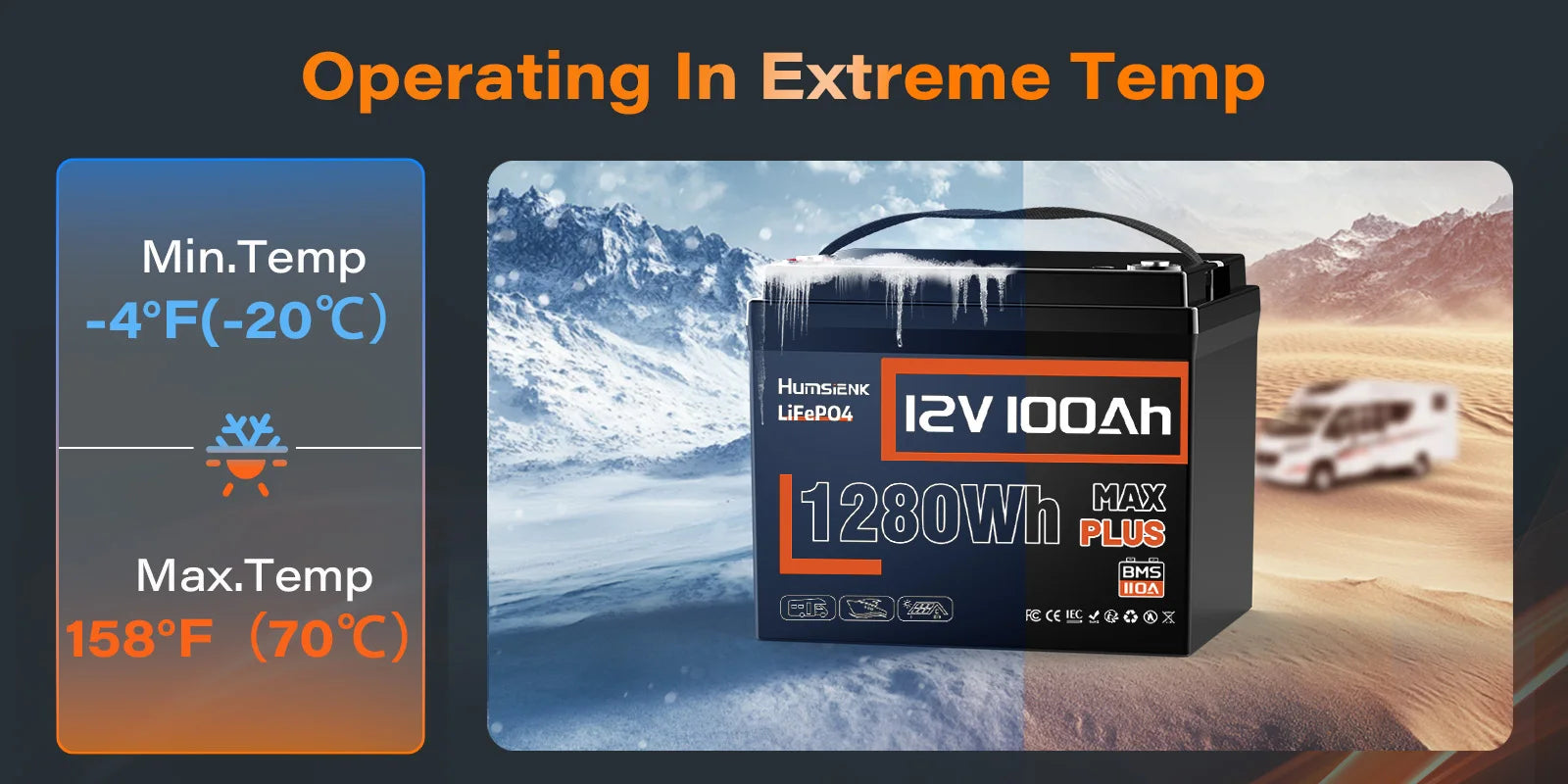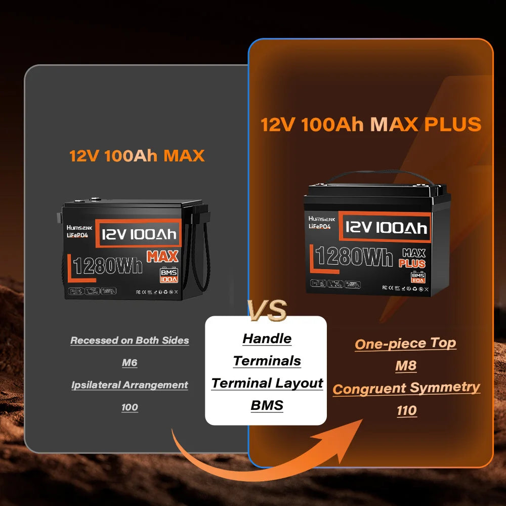 Humsienk LiFePO4 Lithium Battery 12V 100AH MAX With 100A BMS Protect Portable