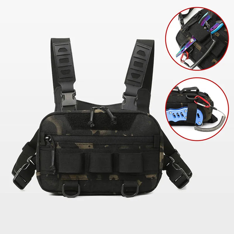 Tactical Chest Vest Bag Backpack Front Rig Pouch Lure Travel Fanny Pack