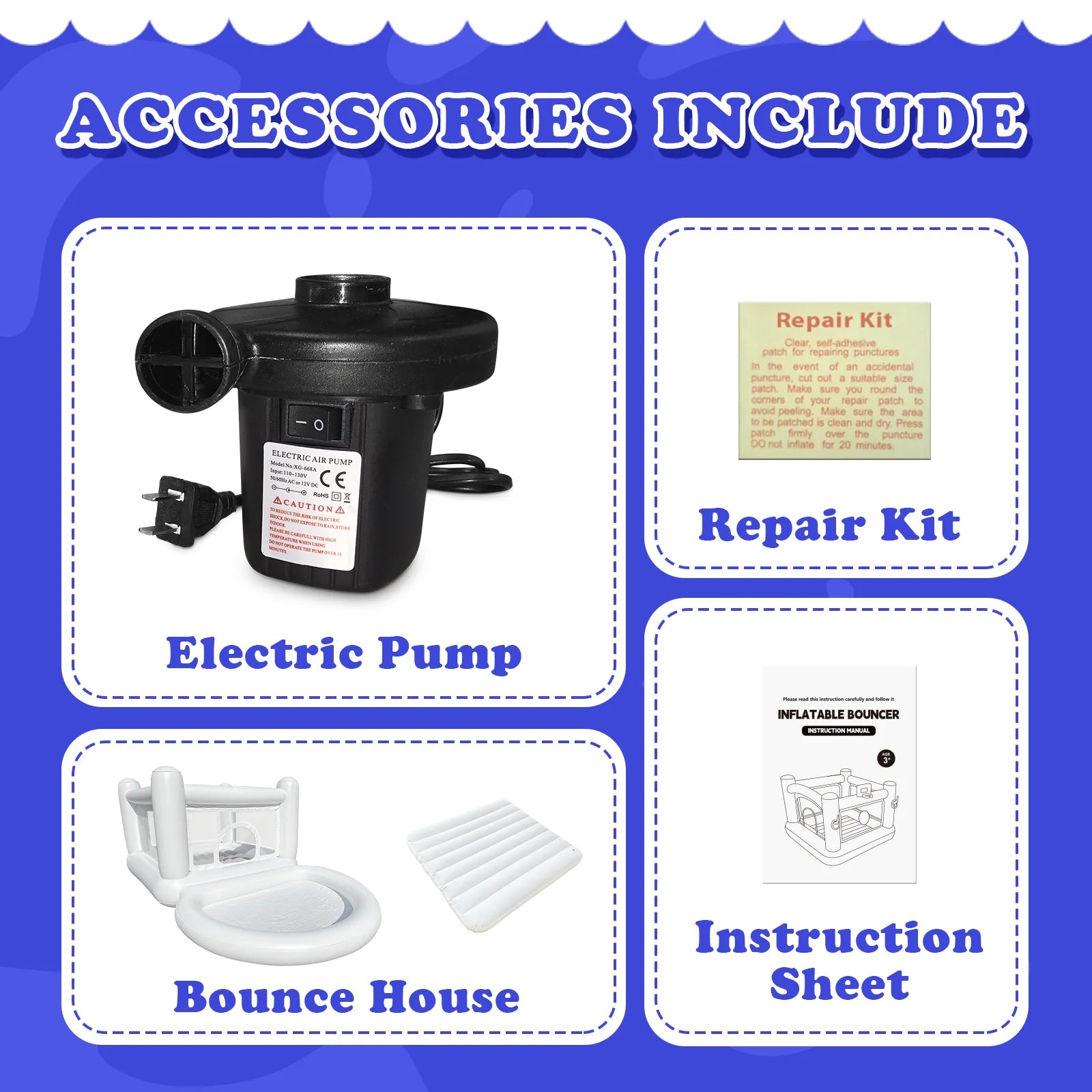 White Bounce House with Pump Kids Ball Pit Bounce House for Kids 3-6 Birthday Indoor or Outdoor Playhouse Customization